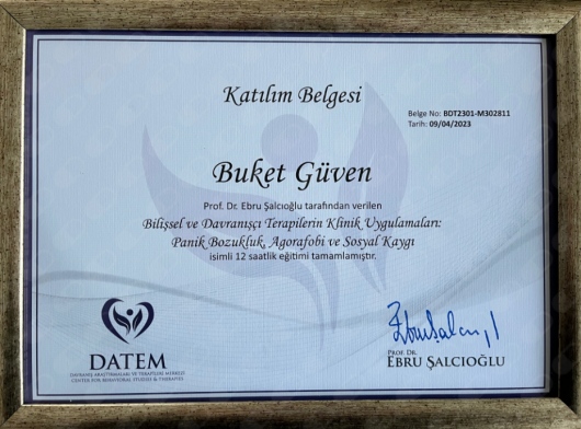 Lisans eğitimimden sonra iş bulamadığım için kaygı yaşıyordum. Uzun zamandır yaşadığım bu kaygıya çözüm bulamıyordum. Kendimi değersiz hissediyordum ve bu sosyal hayatıma yansıyordu. Buket Hanım ile terapi sürecinde ilerledikçe kendime dair olan farkındalığım arttı. Kendime güvenim arttıkça sosyal hayatımda zamanla düzelmeler olduğunu farkettim. Memnun kaldım, kesinlikle tavsiye ediyorum.