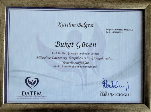 Buket hanıma hayattan zevk almadığım, genel anlamda kendimi çok bunalmış hissettiğim bir dönemde başladım. Görüşmeler sayesinde bu duygularımın altındaki nedenleri fark edebildim. Farkındalığım arttıkça ve bunlarla çalıştıkça motivasyonum da arttı. Hayatım daha anlamlı olmaya başladı ve eski neşeme geri dönebildim. Kendimdeki bu gelişimi görmek beni mutlu ediyor. İhtiyaç duyanlara tavsiye ederim